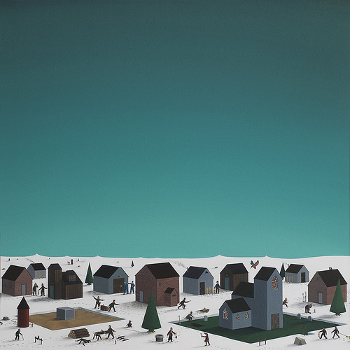 Meterse en el Flickr de Lars Daniel Rehn es hacerlo dentro de un pequeño museo en el que tardamos nada en sentimos atrapados. Atrapados por su peculiar universo pictórico que se compone de paisajes nevados, minimalistas, en el que se muestran pueblos a vista de pájaro. Si nos acercamos a cada obra, (ampliándolas en la pantalla) descubriremos que esas localidades indeterminadas, pero muy al Norte, se encuentran llenas de vida, con personajes que recorren sus calles absortos en sus pensamientos o interactuando con los vecinos.